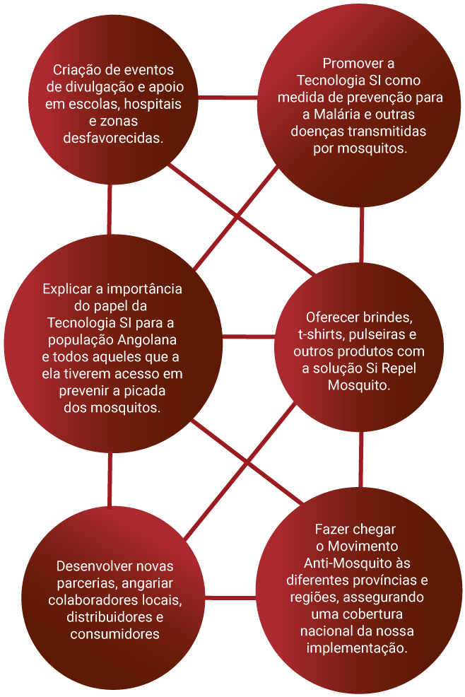O Movimento Anti-Mosquito é uma iniciativa criada por dois empresários (um Angolano e um Português) que planificaram uma estratégia de comunicação e divulgação de medidas de prevenção contra a Malária para o mercado Angolano. Esta iniciativa objetiva consolidar laços culturais entre Portugal e Angola, assentes numa forte parceria comercial, que possibilita à comunidade Angolana o acesso a inovadoras e únicas soluções de Nanotecnologia para prevenir a picada do mosquito nos seus habitantes.